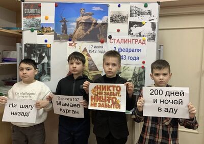 В канун важной даты - 2 февраля, в истории нашего региона и страны во 2в класса (Кл.рук.Пивоварова Н.Д.) прошел классный час «Дети Сталинграда». Ребята узнали о самоотверженности юных героев. В 1942 году Корней Чуковский писал о неоценимом вкладе юных патриотов в нашу Победу: