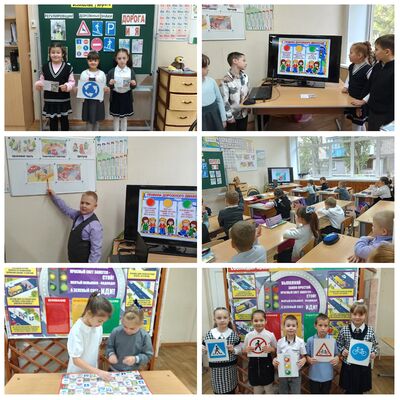 Классными руководителями проведены тематические классные часы по ПДД. На занятиях ученики начальных классов узнали об истории возникновения правил дорожного движения, в каком году и где появился первый светофор, как выглядели первые дорожные знаки и кто раньше регулировал движение на дороге. Так же в игровой форме дети повторили правила поведения на улицах и дорогах города. Кроме того, ученики правильно называли дорожные знаки, которые предназначены не только для пешеходов, но и водителей.