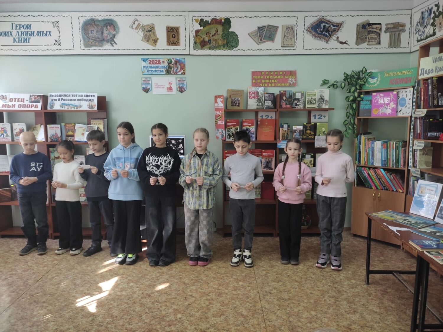 Ребята с интересом смотрели видео о памятниках с белыми журавлями, которые олицетворяют погибших на полях сражений воинов, которые защищали нашу Родину от врагов. Дети познакомились с тематической выставкой, читали стихи.