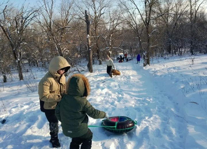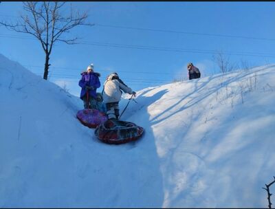 Учащиеся 6в класса МКОУ "СШ√7 " под руководством Дудченко Ю.И., при содействии Станции туристов активно провели время, катаясь на плюшках по зимним горкам.
