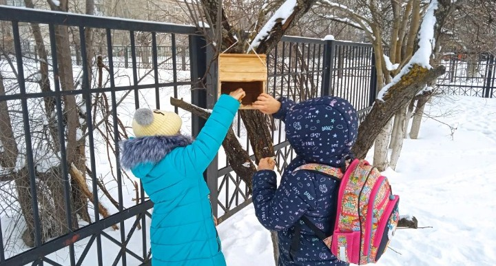 Семья Коноваловой Варвары, ученицы 3 Г класса, сделали кормушку, которую мы повесили на территории школы. И теперь ребята нашего класса ежедневно подкармливают птиц. А синички и воробьи с удовольствием лакомятся семечками, зерном, хлебными крошками.